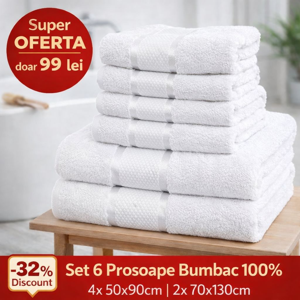 SET 6 Prosoape de Lux Royal din 100% Bumbac Pieptănat – 550 g/mp