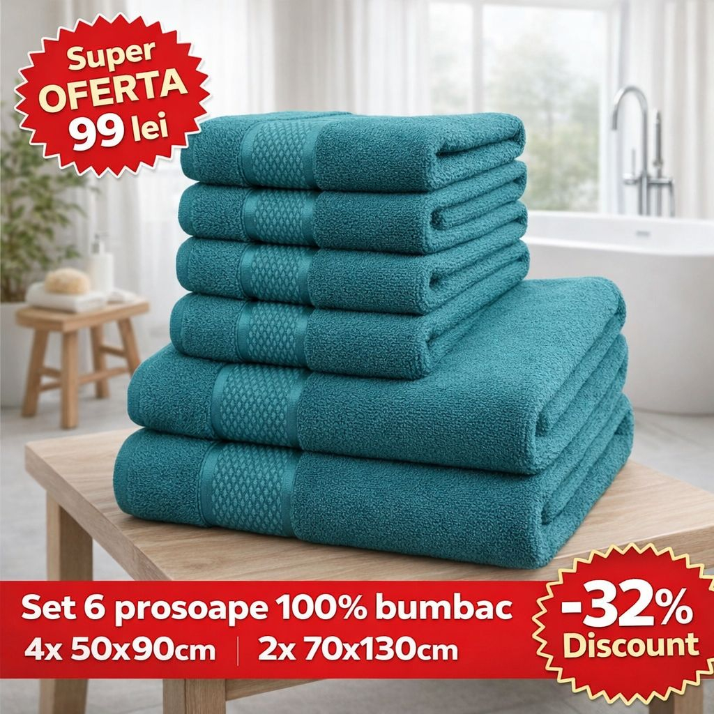 SET 6 Prosoape de Lux Royal din 100% Bumbac Pieptănat – 550 g/mp