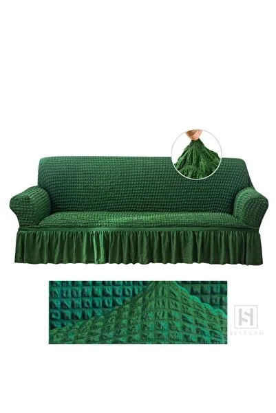 Husa canapea 3 locuri VERDE - 3L07, bumbac embosat Cu Volan, 180 cm la 225 cm