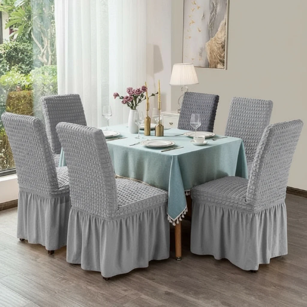 Setul include 6 huse universale pentru scaune, ideale pentru a-ți transforma locuința într-un spațiu mai elegant, curat și bine întreținut.